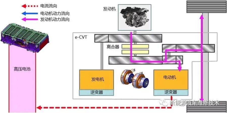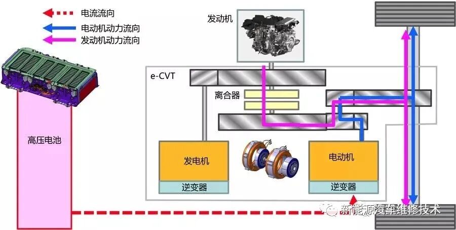 ¸ß¸ºÔع¤¿öÏ·¢Æð»úÆô¶¯¡¢ÀëºÏÆ÷½áºÏ£¬·¢Æð»úÓëµç¶¯»ú¹²Í¬²Î¼Ó¶¯Á¦´«µÝ¡£ÕâÖÖ¹¤¿öϳµÁ¾¿É»ñµÃ¸ü¼ÑµÄ»úÄÜ£¬Âú×ã¸ß¸ºÔع¤¿öÄÜÁ¿ÐèÒª¡£