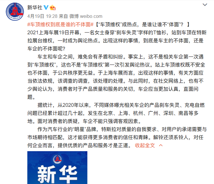ÔÚ´ËÆÚ¼ä£¬¶à¼Ò¹Ù·½Ã½ÌåµãÃû´«µÝÌØË¹À­µÄÐÐΪ¡£ÀýÈç4ÔÂ19ÈÕ£¬ÑëýлªÉçÆÀÂ۳ƣ¬¡°Ïû·ÑÕß¶ÔÓÚ²úÆ·ÖÊÁ¿ºÍ·þÎñµÄ¹ØÇУ¬³µÆó¸Ãµ±Ô½·¢µ±Õæ£¬Ö±ÃæÎÊÌâ¡£Ãæ¶ÔÏû·ÑÕßµÄÖÊÒÉ£¬³µÆó²»ÄÜֻǿµ÷¿Í¹Û³É·Ö¡£¡±4ÔÂ21ÈÕ£¬Ð»ªÉçÔÙ´ÎÆÀÂÛ£¬¡°ÔÚµ÷²é±äÂÒÔ­ÒòÉÏ£¬ÌØË¹À­Õ¼ÓÐÏÈÌìÓÅÊÆ£¬Àíµ±ÒÔÇ«±°Ì¬¶ÈÕùÈ¡¿Í»§ÐÅÀµ£¬Íƶ¯ÎÊÌâ¸üºÃ½â¾ö£¬³Ðµ£Æð¸Ã³Ðµ£µÄÔðÈΡ£´óÆóÒµ¸ÃÓдóÆóÒµµÄµ£ÈΣ¬Ã»ÓÐÄÄ¼ÒÆóÒµÄܹ»ÊÑÇ¿µÃÐÄÓ¦ÊÖ£¬´ú±íÆóÒµÐÎÏóµÄ¸ß¹Ü¸ü²»ÄÜÆøÑæÍòÕÉ£¬³äÈÎʲô¡°°Ô·×ܲᱡ£³öÁËÎÊÌâ²»³¹¸Ä£¬ÓÐÎÊÌâµÄ¸ß¹Ü²»³·»»£¬Ã»ÓгÏÒâºýŪÊ£¬ÖÕ½«ÔٴγԽÌѵ¡£¡±