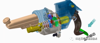 µ±¼ÝʻԱ²ÈÏÂÔ춯̤°å£¬Á¬¸Ë×÷ÓÃʹµÃÊäÈëÍÆ¸Ë²úÉúÎ»ÒÆ£¬Ì¤°åÐг̴«¸ÐÆ÷¼ì²âµ½ÊäÈëÍÆ¸ËÎ»ÒÆ²úÉúµÄÐźÅ£¬²¢½«ÆäÐźŷ¢ËÍÖÁµç»ú½ÚÔìÆ÷£¬µç»ú½ÚÔìÆ÷ÍÆËã³öµç»úÓ¦²úÉúµÄŤ¾Ø£¬²¢½«Ðźŷ¢Ë͸øµç»ú£¬µç»ú½Ó¹Üµ½ÐźźóÀûÓô«¶¯×°Öý«Å¤¾Ø×ª»¯ÎªËÅ·þÔ춯Á¦£¨¼æÓÃÈËÁ¦ºÍ·¢Æð»ú¶¯Á¦×÷ΪÔ춯ÄÜÔ´µÄÔ춯ϵͳ£©£¬¹²Í¬ÉϼÝʻԱ²ÈÏÂÔ춯̤°å²úÉúµÄÍÆ¸ËÁ¦Ò»Â·×÷Óã¬ÔÚÔ춯Ö÷¸×ÄÚ¹²Í¬×ª»¯ÎªÔ춯Æ÷ÂÖ¸×ҺѹÁ¦À´ÊµÏÖÔ춯¡£µ¥Ò»À´ËµÆä¹¤×÷¹ý³ÌÄܹ»ËõÂÔΪ£ºÌ¤°åÔ춯¡úÌá¹©Î»ÒÆÐźšúµç»ú¶¯µ¯ÌṩÖúÁ¦¡úʵÏÖÔ춯¡£
