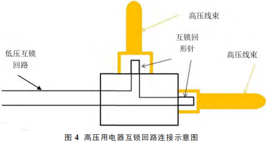 ¸÷¸ö¸ßѹµçÆ÷¼þÓɵÍѹ»¥Ëø»ØÂ·´®ÁªÔÚһ·£¬¸ßѹÏßÊøÓë¸ßѹÓõçÆ÷ÏνÓʱ£¬Ñ¡È¡´ø¸ßѹ»¥Ëø½á¹¹µÄÏÎ½ÓÆ÷Á¬Í¨Õû¸ö»ØÂ·¡£Ö»Óиßѹ²å¼þÐé½Ó»òÕß¶Ï¿ª£¬Õû¸öµÍѹ»¥Ëø»ØÂ·Ôò»á¶Ï¿ª£¬BMSÖÕ³¡Ìṩ¸ßѹÊä³ö£¬±í²¿²Ù×÷ÈËÔ±Ôò²»»áÓд¥µçΣÏÕ¡£Èçͼ4¸ßѹÓõçÆ÷»¥Ëø»ØÂ·ÏνÓʾÒâͼËùʾ¡£