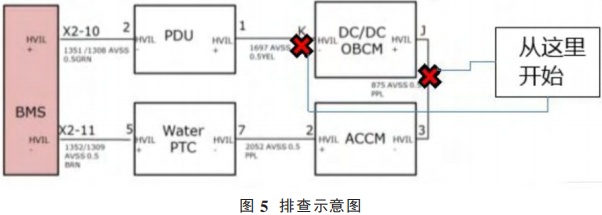¸Ã¿îµç¶¯³µÑ¡È¡µÄ´®Áª·½Ê½£¬´Ó BMS µÄÕý¼«Òý³ö¸ßѹ»¥ËøµÍѹ¼ì²âÏߣ¬õè¾¶ PDU-DCDC-ACCM-PTC Ôٻص½ BMS µÄ¸º¼«£¬ÐγÉÒ»¸ö»¥Ëø»ØÂ·¡£Õý³£ÉϵçµÄÇé¿öÏ£¬»¥Ëø»ØÂ·µÄÊä³öµçѹͨ³£¡Ý5V ÇÒ¡Ü9V¡£±ØÒª²é³ÊÇ·ñ´æÔÚ¸ßѹ»¥ËøµÄÎÊÌâʱ£¬¼ì²â BMS ÊäÈëÊä³öµÄÁ½¸ö½Åλµçѹ£¬ÔÚÉè¼ÆµçѹÁìÓòÄÚÔòÕý³£¡£»òÕßÖ±½Ó²â»ØÂ·µç×裬ÀíÂÛÉÏ»ØÂ·µÄµç×èֵΪ 0¦¸£¬µÍÓÚ 5¦¸ ¶¼Äܹ»ÊÓΪ 0¦¸¡£