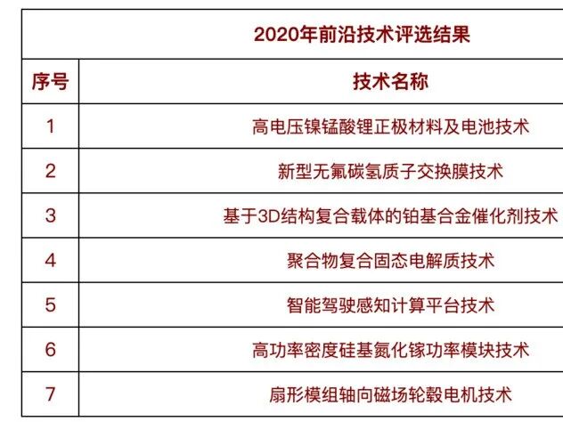 7ÏîÇ°ÑØ¼¼ÊõÔ̺¬¸ßµçÑ¹ÄøÃÌËáï®Õý¼«×ÊÁϼ°µç³Ø¼¼Êõ¡¢ÐÂÐÍÎÞ·ú̼ÇâÖÊ×Ó»¥»»Ä¤¼¼Êõ¡¢»ùÓÚ3D½á¹¹¸´ºÏÔØÌåµÄ²¬»ùºÏ½ð´ß»¯¼Á¼¼Êõ¡¢¾ÛºÏÎ︴ºÏ¹Ì̬µç½âÖʼ¼Êõ¡¢ÖÇÄܼÝÊ»¸ÐÖªÍÆËãÆ½Ì¨¼¼Êõ¡¢¸ß¹¦ÂÊÃܶȹè»ùµª»¯ïع¦ÂÊÄ£¿é¼¼Êõ¡¢ÉÈÐÎÄ£×éÖáÏò´Å³¡ÂÖì±µç»ú¼¼Êõ ¡£