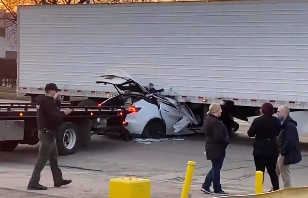 ÆäʱÅų¡Ò²ÊǼ«¶È²ÒÁÒ£¬ÕâÁ¾ÌØË¹À­Ö±½Ó¿¨ÔÚÁ˰ë¹Ò¿¨³µÏÂÃæ£¬¶¥²¿±»×²µÄÏ¡Ëé¡£