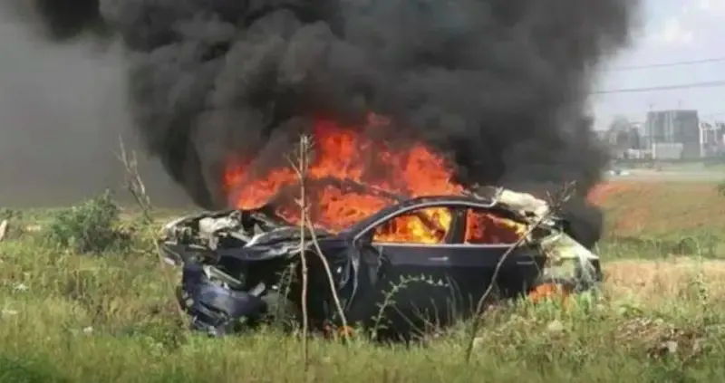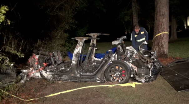 ƾ¾ÝÏÖ³¡Í¼Æ¬£¬ÕâÁ¾ÌØË¹À­ÉÕ³ÉһƬ»Ò½ý£¬Ö»ÄÜ¿´µ½Ê£Ïµİë¸ö³µ¼Ü¡£